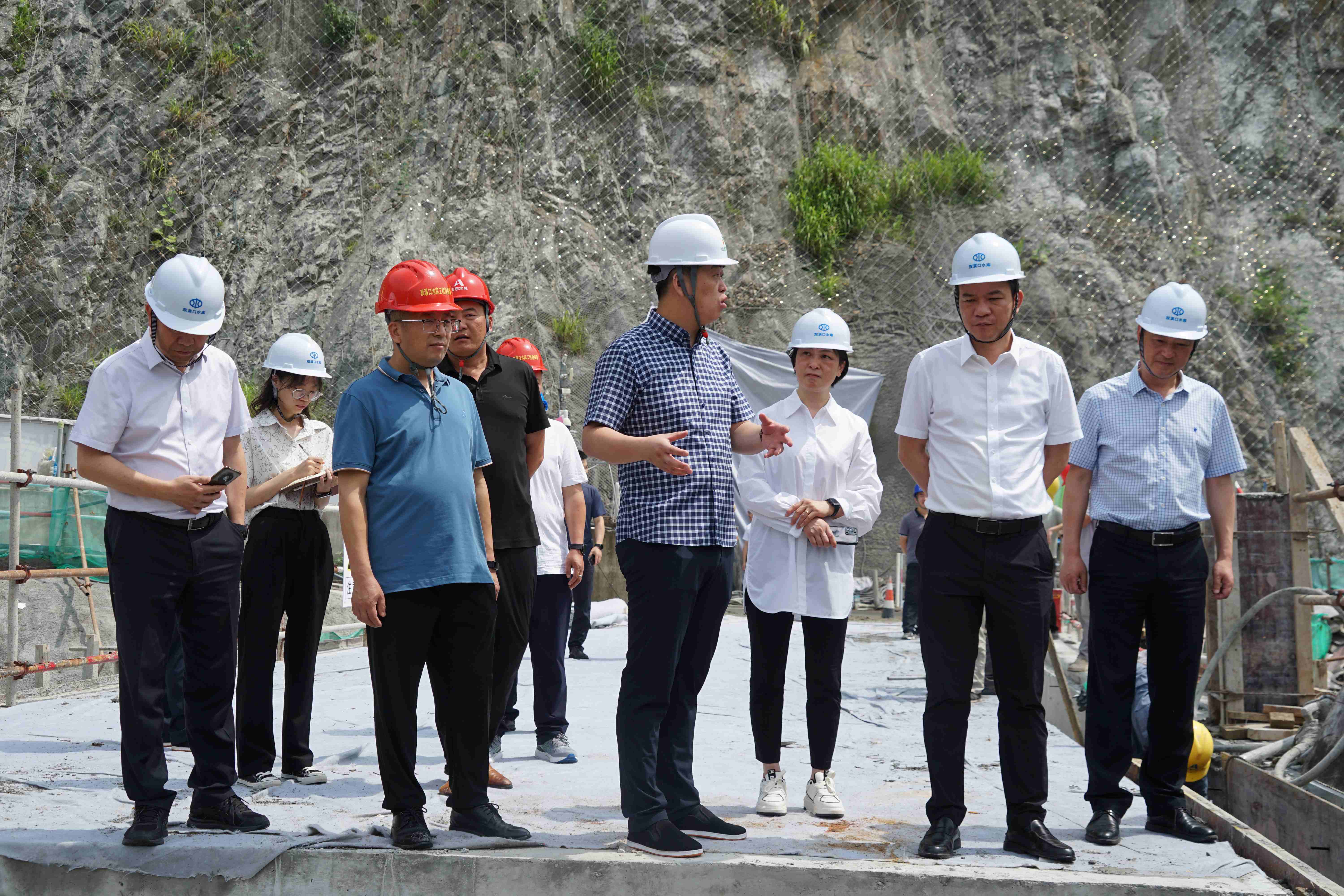 6月14日,杭州临安区区委书记杨国正一行到双溪口水库工程调研指导工作。临安区水利水电局局长汤文卓,杭州鲁润公司、第六分公司负责人陪同调研。